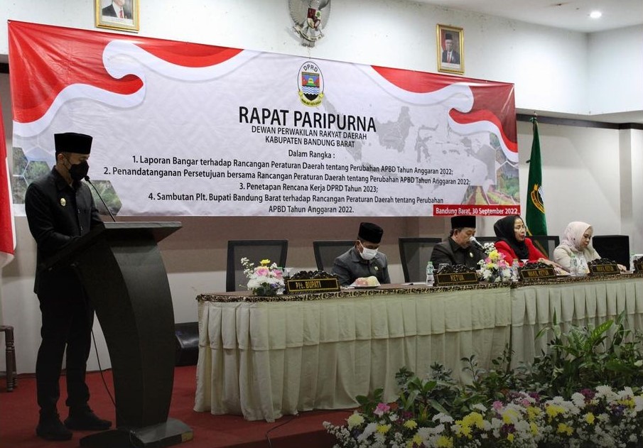 Rismanto mengatakan rapat kali ini membahas penyampaian laporan hasil pembahasan rancangan peraturan daerah tentang perubahan anggaran pendapatan dan belanja daerah kabupaten bandung barat tahun anggaran 2022. Persetujuan bersama dprd dengan pemerintah daerah terhadap rancangan peraturan daerah tentang perubahan anggaran pendapatan dan belanja daerah kabupaten bandung barat tahun anggaran 2022. “Penetapan rencana kerja dprd kabupaten bandung barat tahun 2023,” ujarnya .